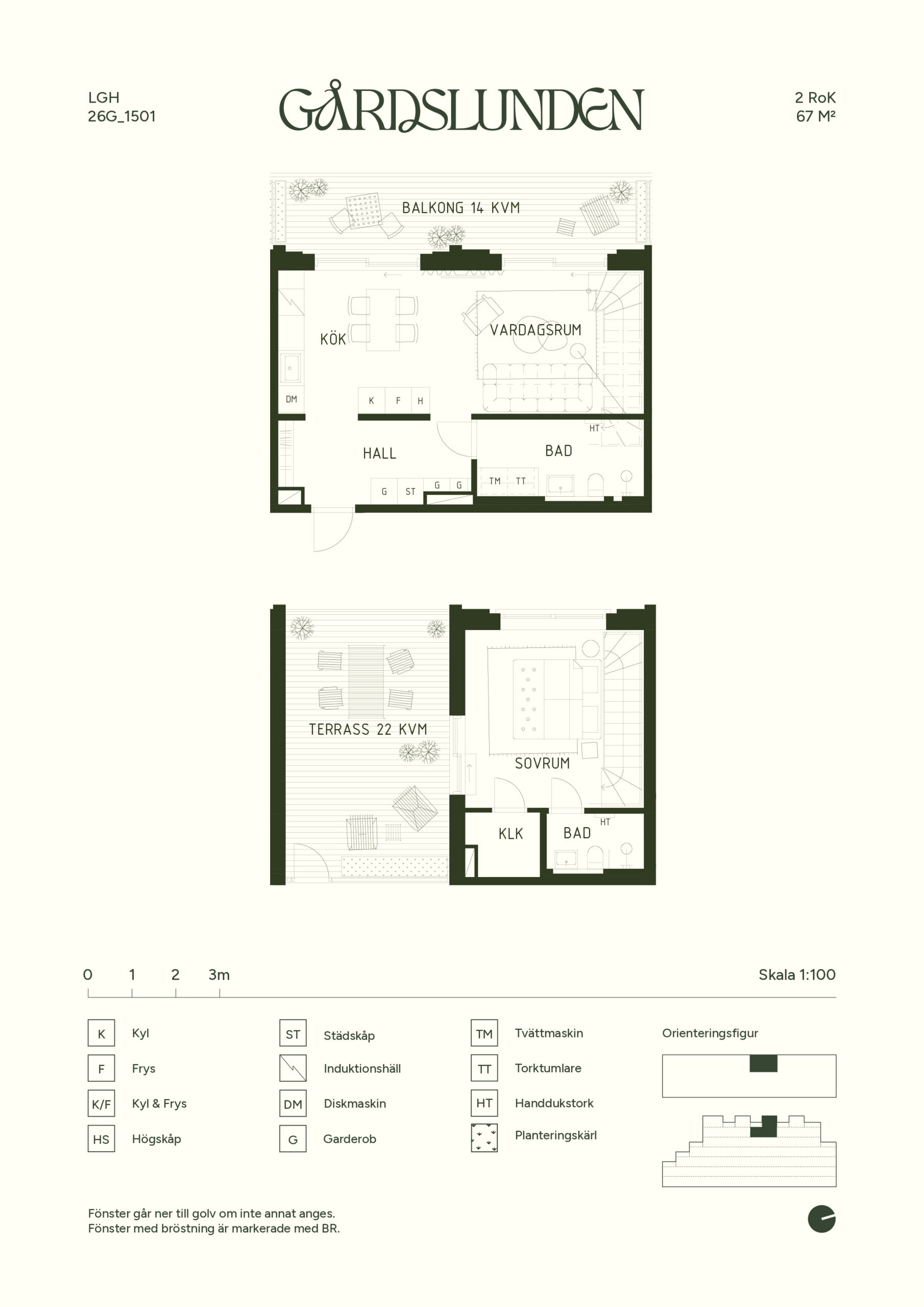 Välplanerad etagetvåa med balkong och terrass. Entréplan har kök och vardagsrum i öppen planlösning för en social känsla, här ryms matbord och soffgrupp samt utgång till balkong. En trappa upp finns sovrum, klädkammare, badrum samt utgång till solig terrass om 21 kvm med magnifik utsikt.