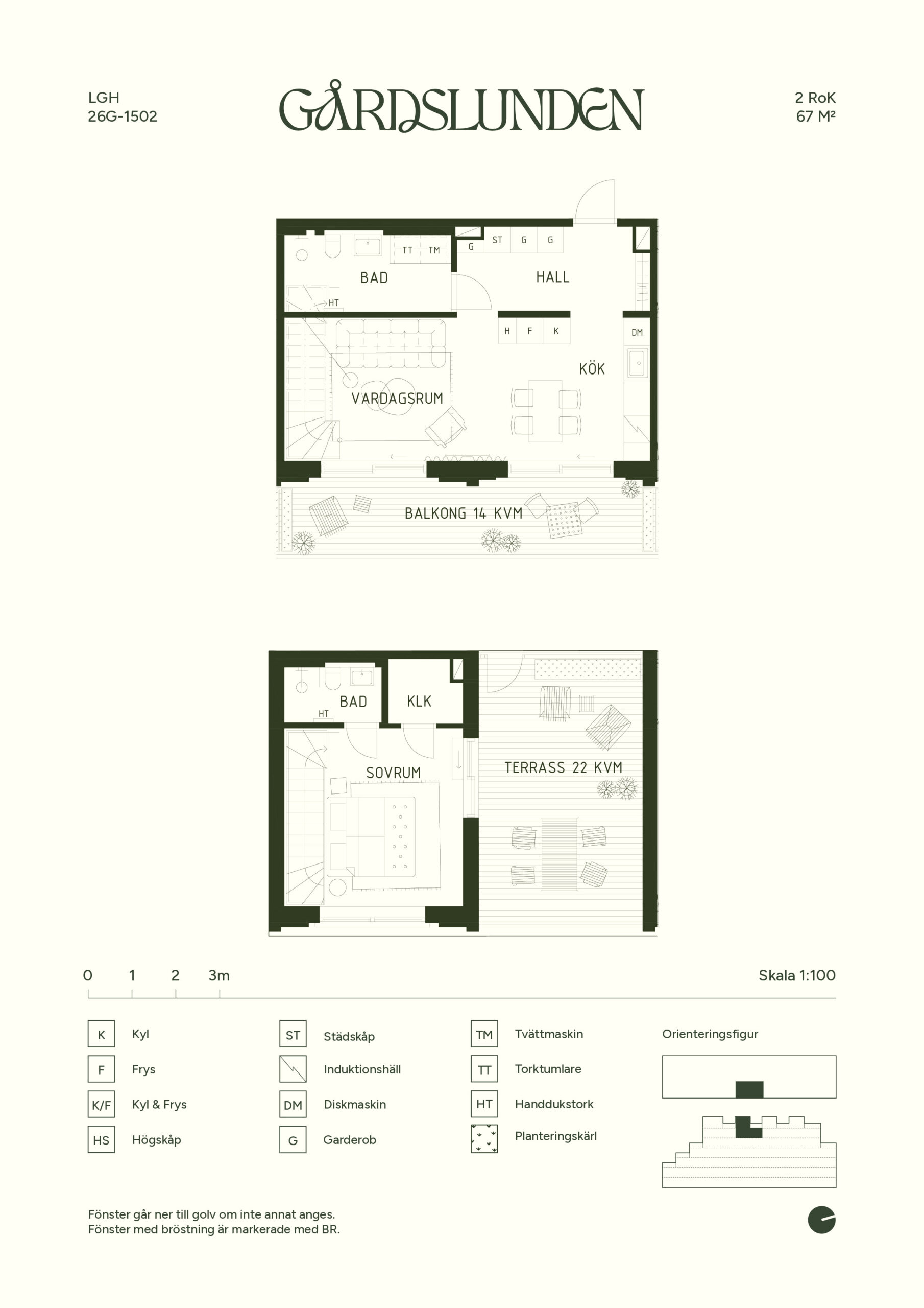 Välplanerad etagetvåa med balkong och terrass. Entréplan har kök och vardagsrum i öppen planlösning för en social känsla, här ryms matbord och soffgrupp samt utgång till balkong. En trappa upp finns sovrum, klädkammare, badrum samt utgång till solig terrass med magnifik utsikt.