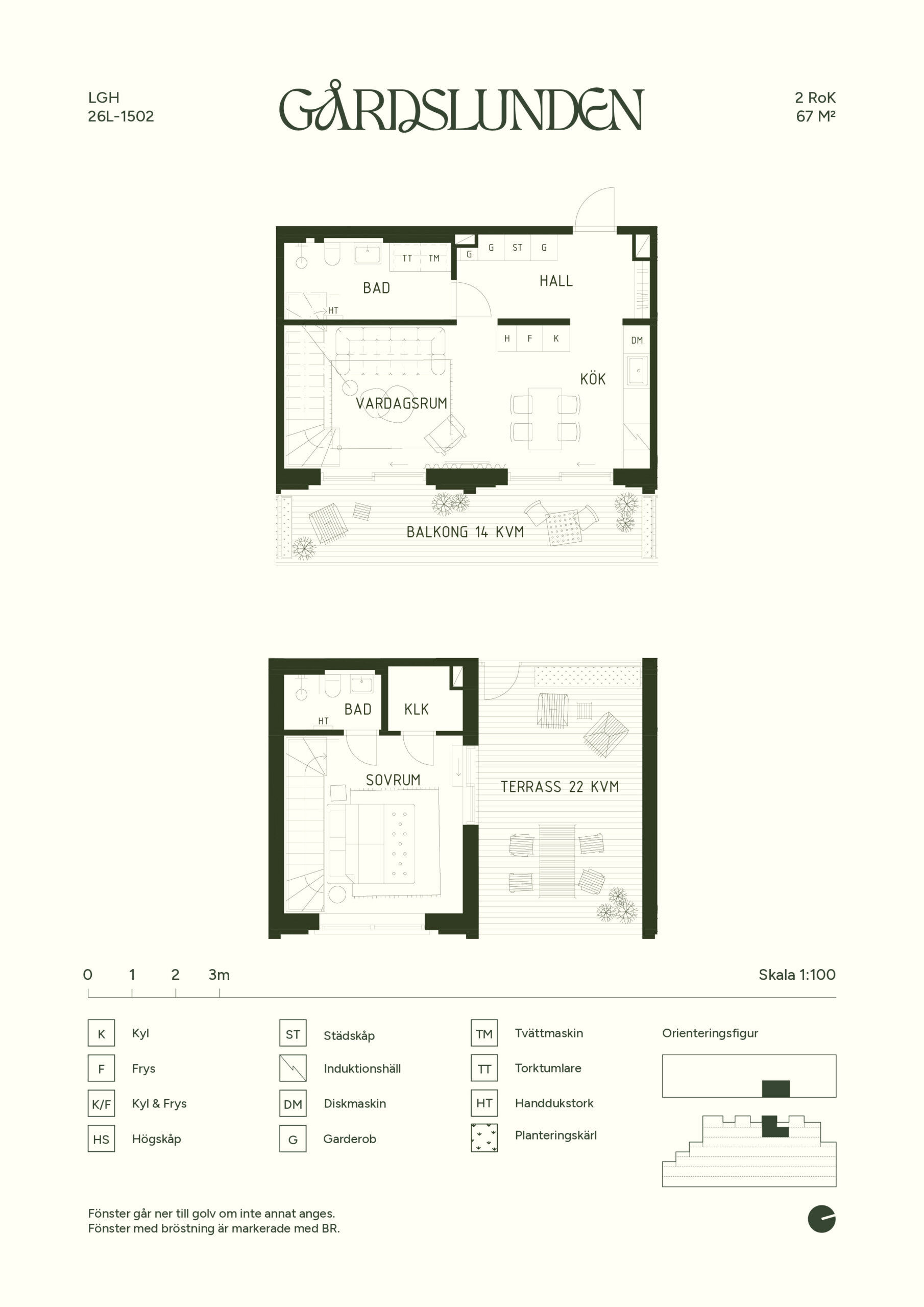 Välplanerad etagetvåa med balkong och terrass. Entréplan har kök och vardagsrum i öppen planlösning för en social känsla, här ryms matbord och soffgrupp samt utgång till balkong. En trappa upp finns sovrum, klädkammare, badrum samt utgång till solig terrass med magnifik utsikt.